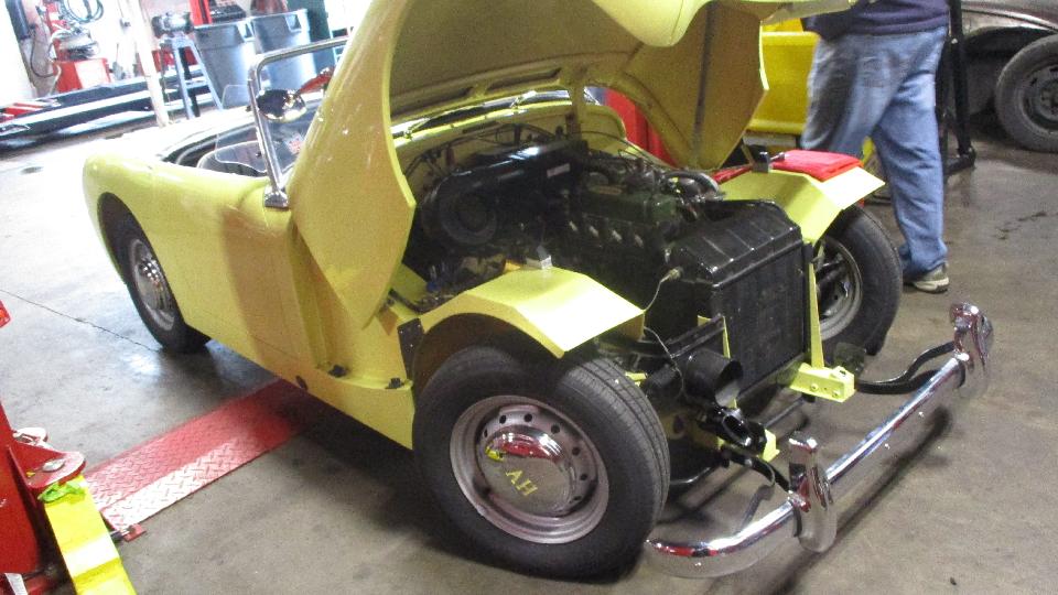 This MGA race car was the subject of today's tech session. It was getting an antifreeze test, fogging of the cylinders, and desiccant plugs in preparation for winter storage. (Uh, antifreeze in a race car? Yup).