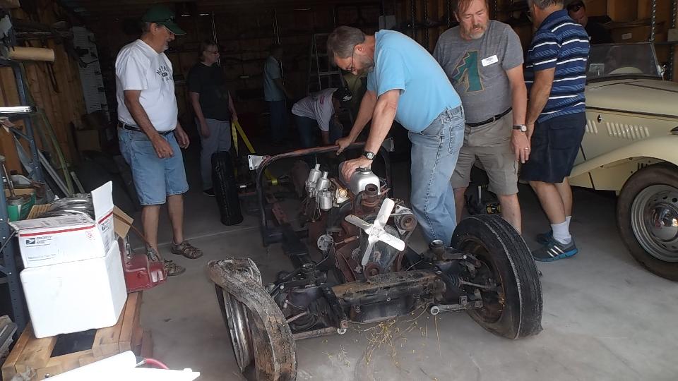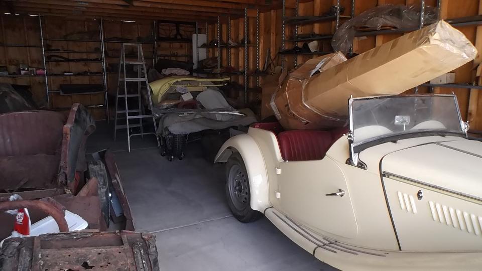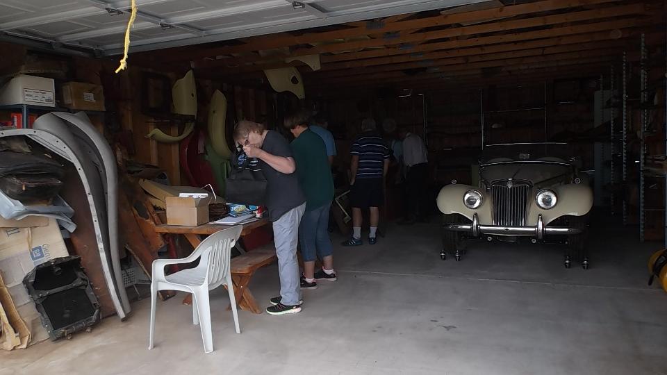 Early morning rising to meet some folks for 7-am breakfast at a local beanery. This was followed by a short trip to another local residence where we met more club members with a mission. We were here to sort out cars and parts from an estate, getting things together in prepration for liquidation. Here we found four MGs, one TD and three TF.