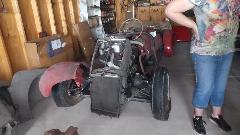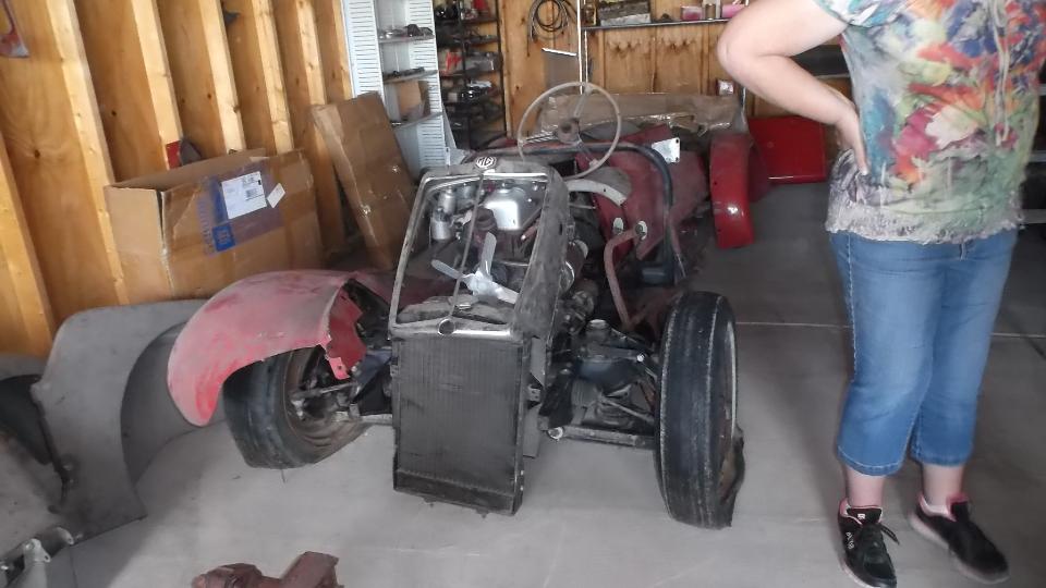 The fourth one was another TF rolling chassis outside with the engine and gearbox inside. This we moved to the left front corner of the garage and collected a many remaining parts as we could find that appeared to be TF parts withoug duplicating anything. This seemed to be a more complete collection that we had anticipated.