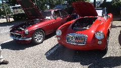 Five MGB GT and MGC GT, a couple race cars, and the MGB all dressed up for show (but not so much go).