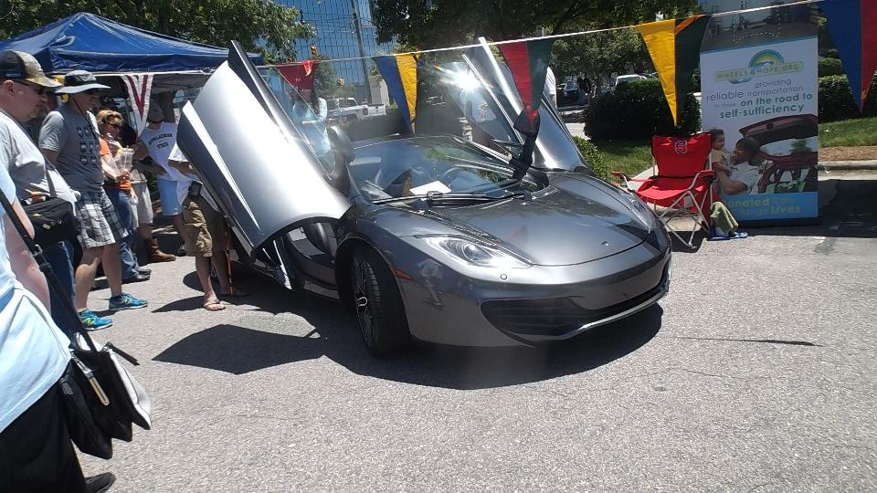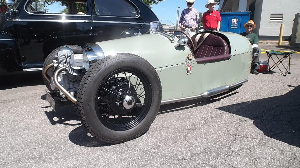Sitting next to the Brad-Penn oil concession, a 2014 McLaren (if you have to ask, you can't afford it). Then as far away from the Morgans as possible, in the non-British class, a 1998 Moto Guzzi 3-wheel sport. I didn't ask, but I suspect it is a one-off.