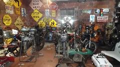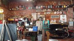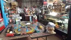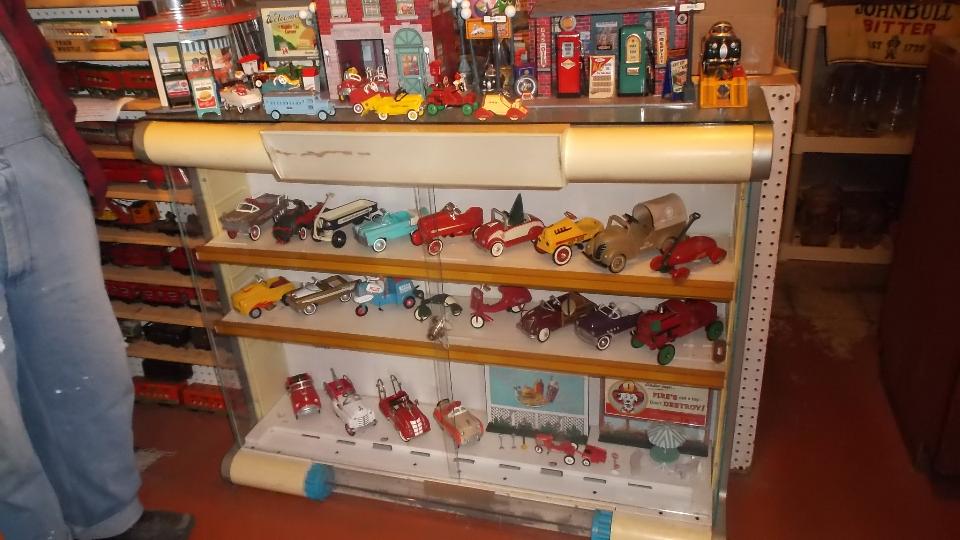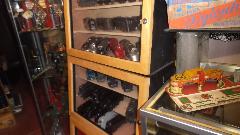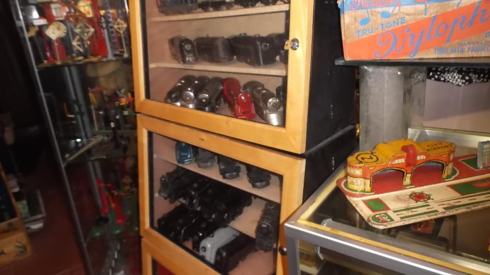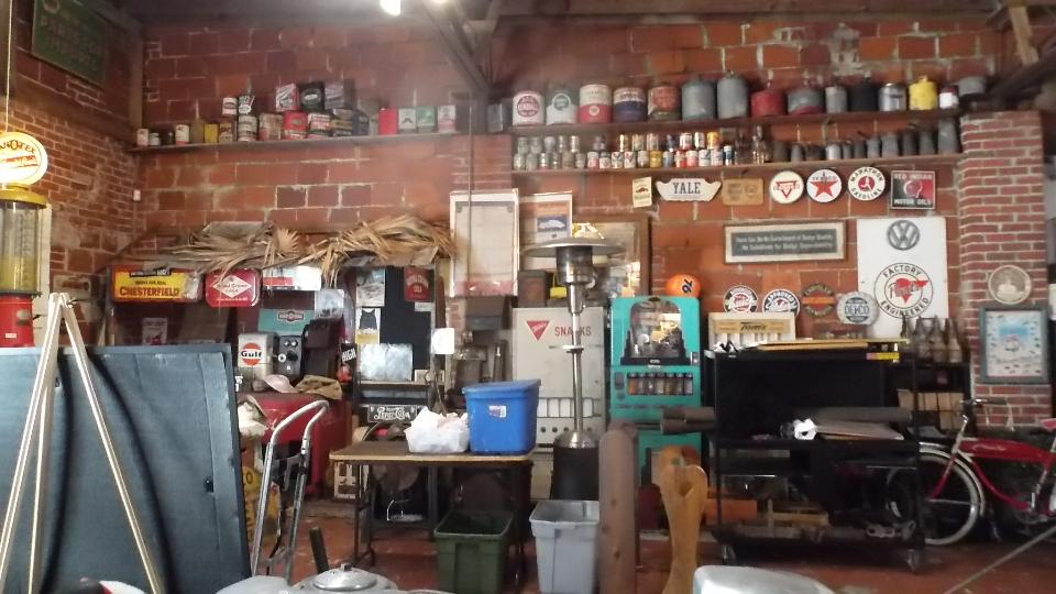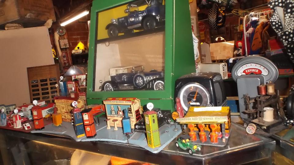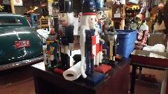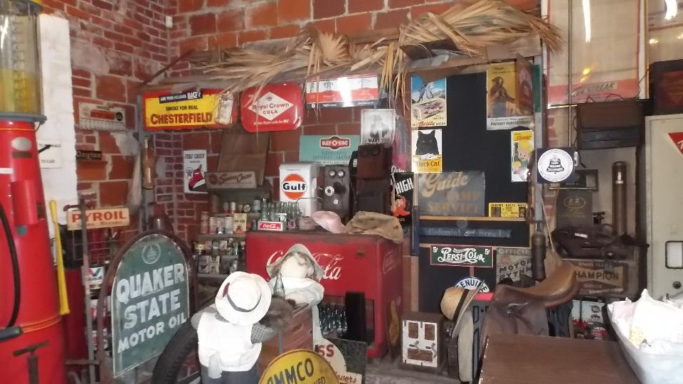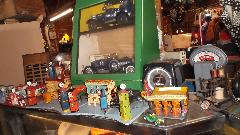 Today we dropped in to visit Robert Moore in Panama City, Florida. I heard he had a collection of vintage cars, but I wasn't prepared for everything else I saw. He seems to be collecting almost everything vintage, not only automobilia but also motor boat motors, wooden dolls, model railroad, slot cars, vintage clothing, coke machine, jukebox, telephone, road signs, model cars, vending machines, bicycles, you name it and he likely has it.