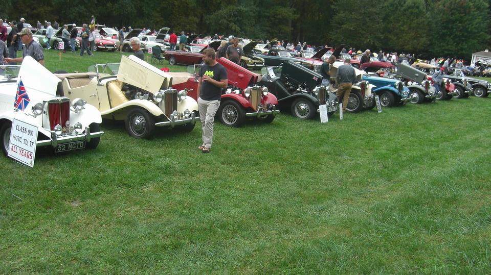There was a little bluff at front of the field that would provide a good overview for the cars on display. But first, on that bluff was the Premier class, the group of cars that had won their individual clsses last year, ten of the finest examples of restored British Cars. Eye candy, vintage car porn, go ahead and drool.