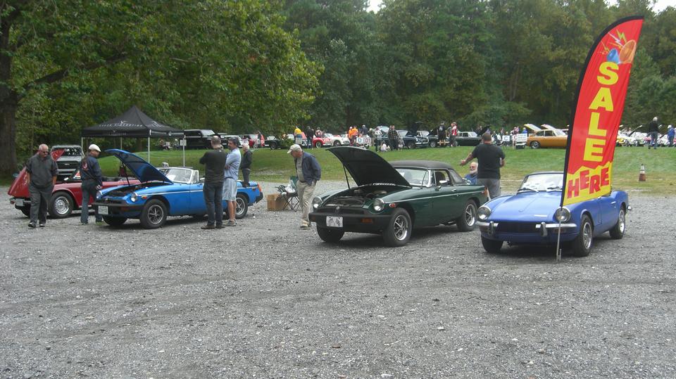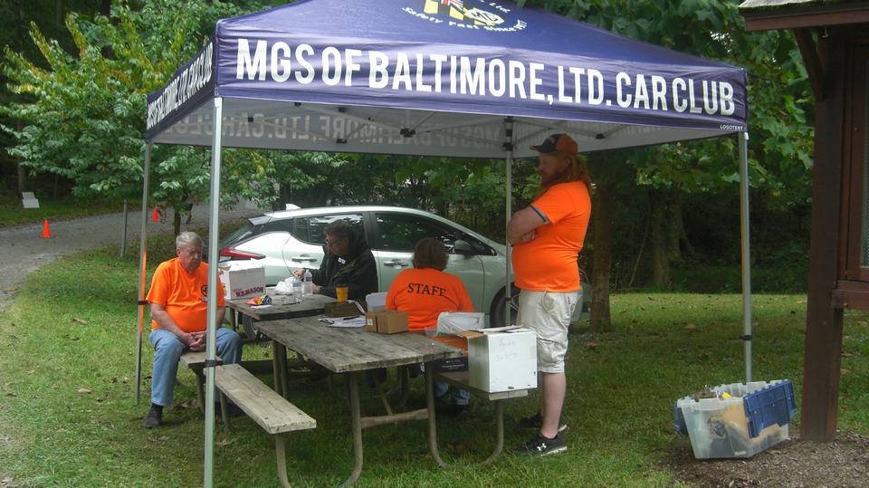 Taking a break to check out the peripherals before going on to the large number of "other British" (non-MG) cars. Say hello to the hard working registration folks at he entrance gate, they deserve a rest by now. Then a look at the cars presented for sale. One of those drove away as I was walking around to the front side.