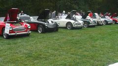 Ten Austin (Big) Healey, two AH 100's in the middle of the line. Two AH Sprite bug eyes with only themselves to keep them company. Pretty sure there were no flat bonnet Sprites today.