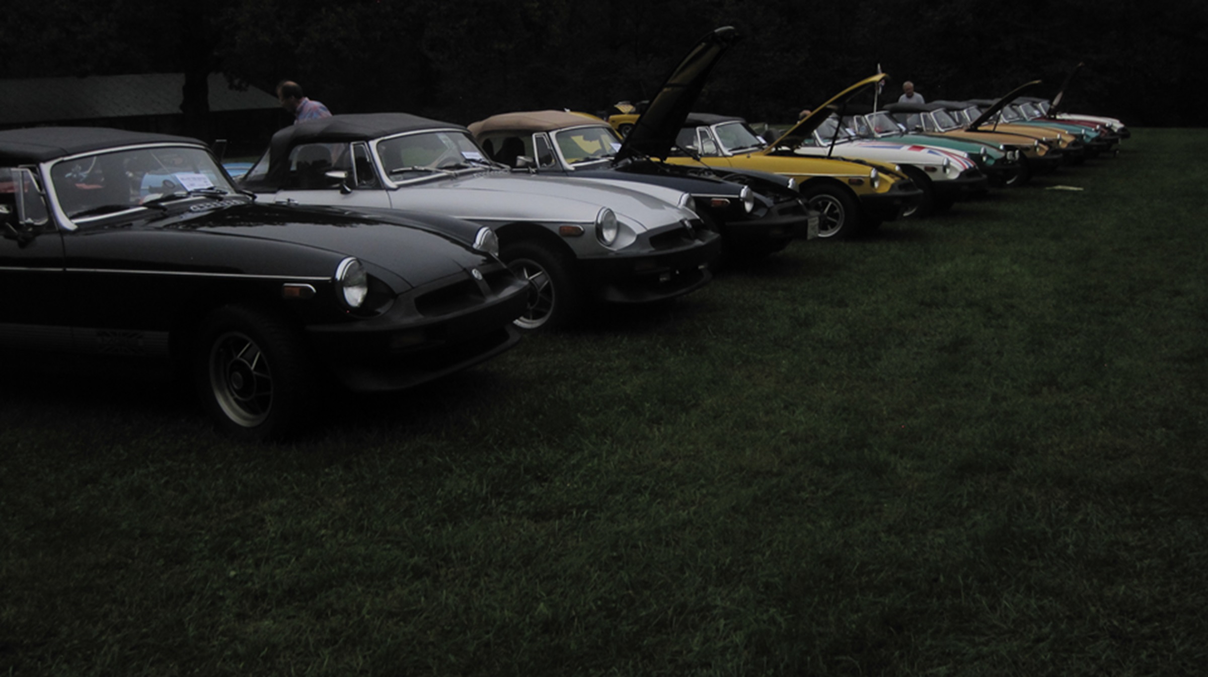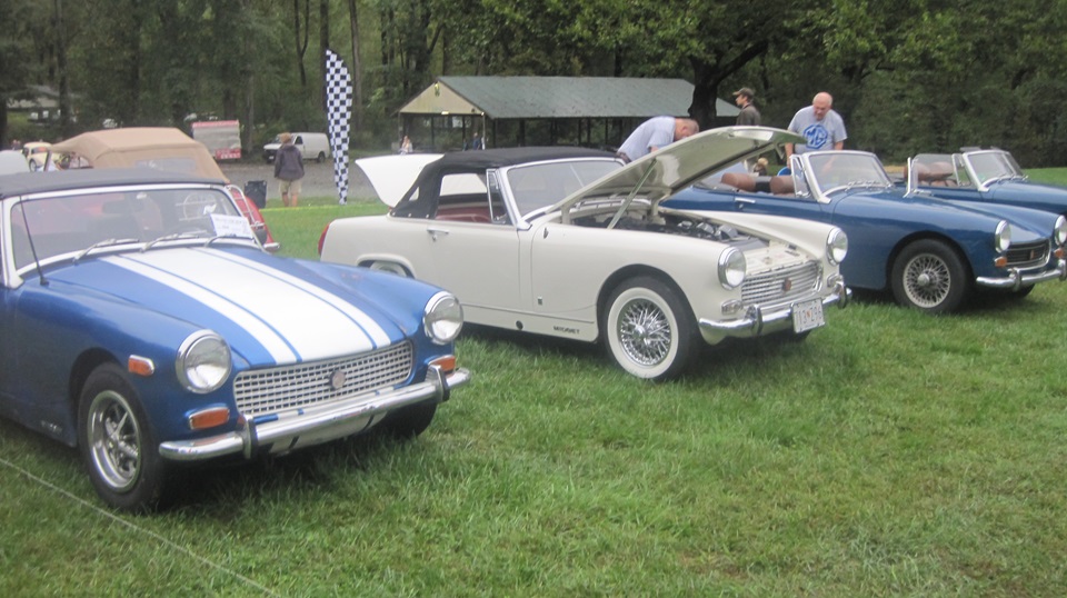 Please do not drool on the cars. Right behind Premier was a row of chrome bumper MG Midgets.