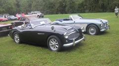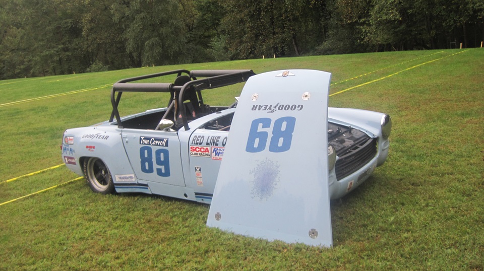 Two big Healey and two Jaguar, I guess two cars makes class. One MG Midget race car in a class of his own.