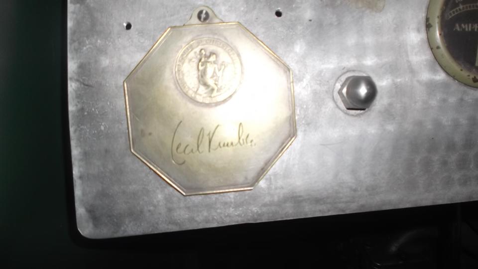 Dash plate signed by Cecil Kimber, the pre-selector gearbox shifter, and the 1100-cc 6-cylinder engine.