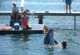 Heading back east we stop at the Dolphin Research Center in Marathon. We didn't have the right reservations to swim with the dolphins, but we did get to watch the show. Getting back to Key Largo we wanted to take the glass bottom boat and go snorkel with the tropical fish at John Pennekamp Coral Reef State Park. Unfortunately we missed the last boat out for the day by 20 minutes, and we have more road to go today, so we have to skip that one. We pick up a couple of Florida T-shirts before leaving the Keys, then on our way again.