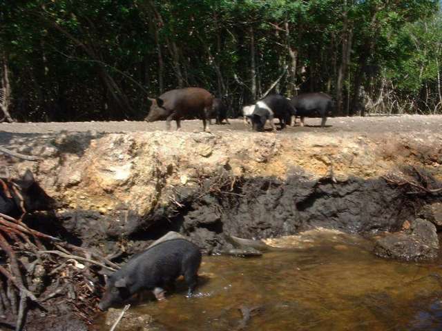 Ah, it's Wednesday, 3/27, and this is why we came. Just 20 miles more to downtown Key West where we drive around the historic town for a while, then walk around town for a while, then visit the Key West Aquarium and marine museum. Having enough of the tourist trap stuff we head for the big marker with the "90 Miles to Cuba" sign, the southern most point in the continental United States. Then we go east a bit to find the beach, and it's time for Elliot's first swim in ocean salt water. Swimming head down and feet up is not exactly natural for him, but it's the only way to get to the bottom when you float like a cork.