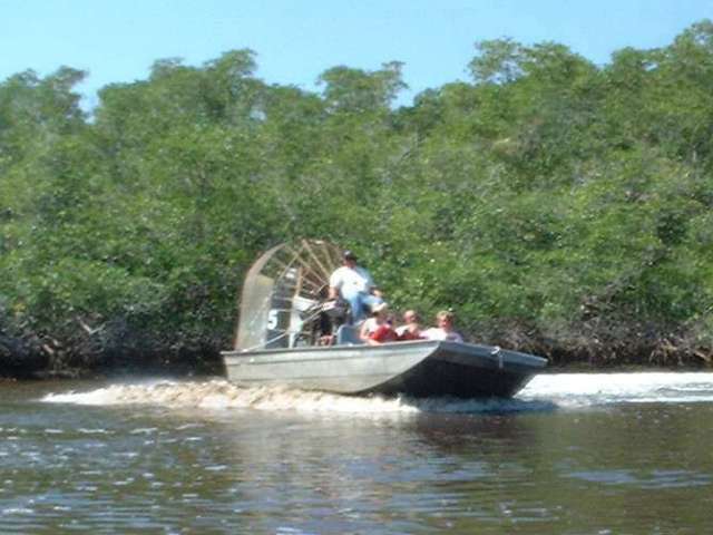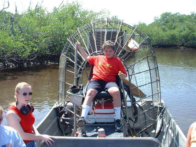 On Thursday 3/28 we have a few tourist type things on the agenda. First up is Captain Doug's Airboat Tours where we get to grouse around the backwaters of the Everglades for an hour to check out the Florida wildlife. Alligators yes, but also wild boar, porcupine, raccoon, turkey, pelican, egret, crab, eagle, vulture, and a variety of snakes (sorry, no panthers in sight). Elliot wanted to crank the airboat up for a bit of a spin, giving the other passengers a little concern I'm sure, but it was only for a picture.
