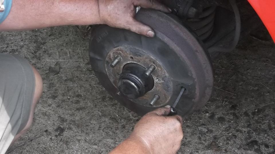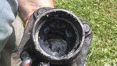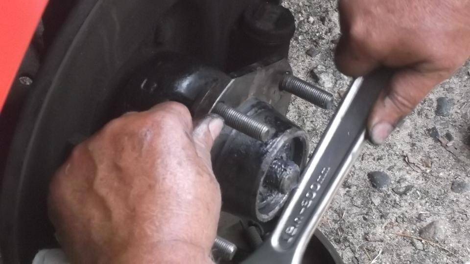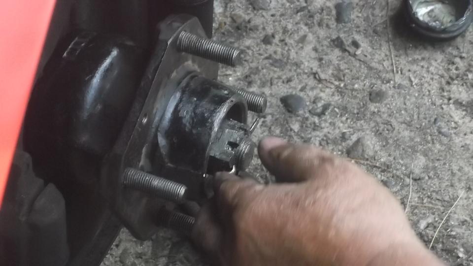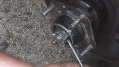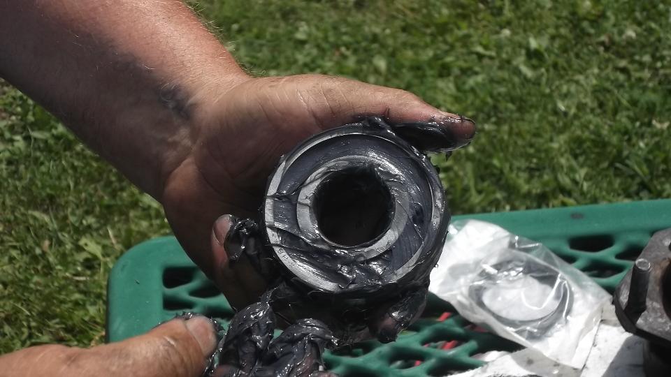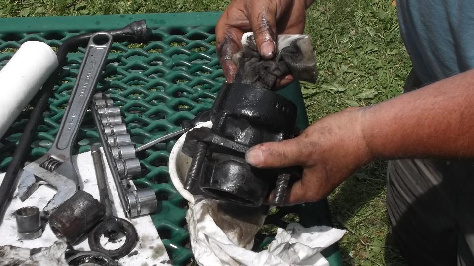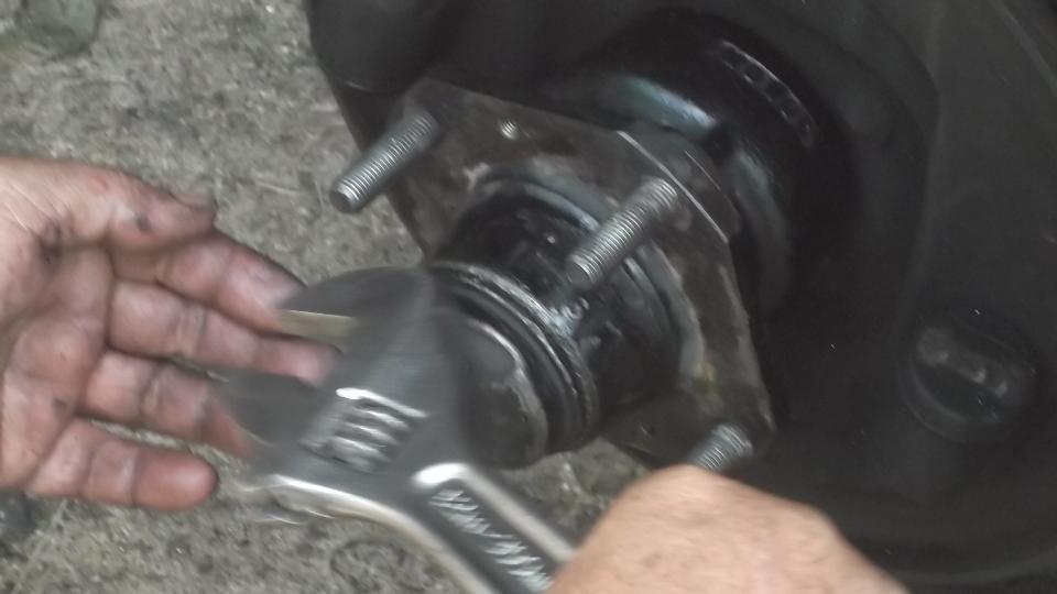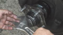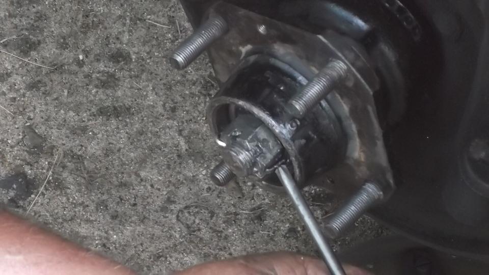 Flip the extension around and use it to tap out the inboard bearing. A little wiggle test shows the excess clearance in the bearings. They were not about to fall apart, but the odd tire wear was enough to prompt me to change the bearings.
