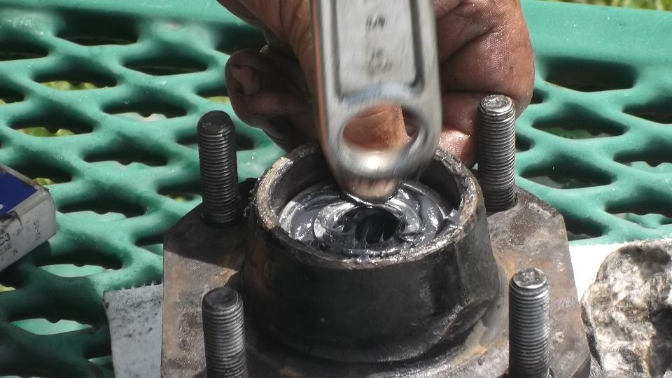 More grease for the larger inboard bearing, and also a bit of grease in the hub between the bearings just for good measure.